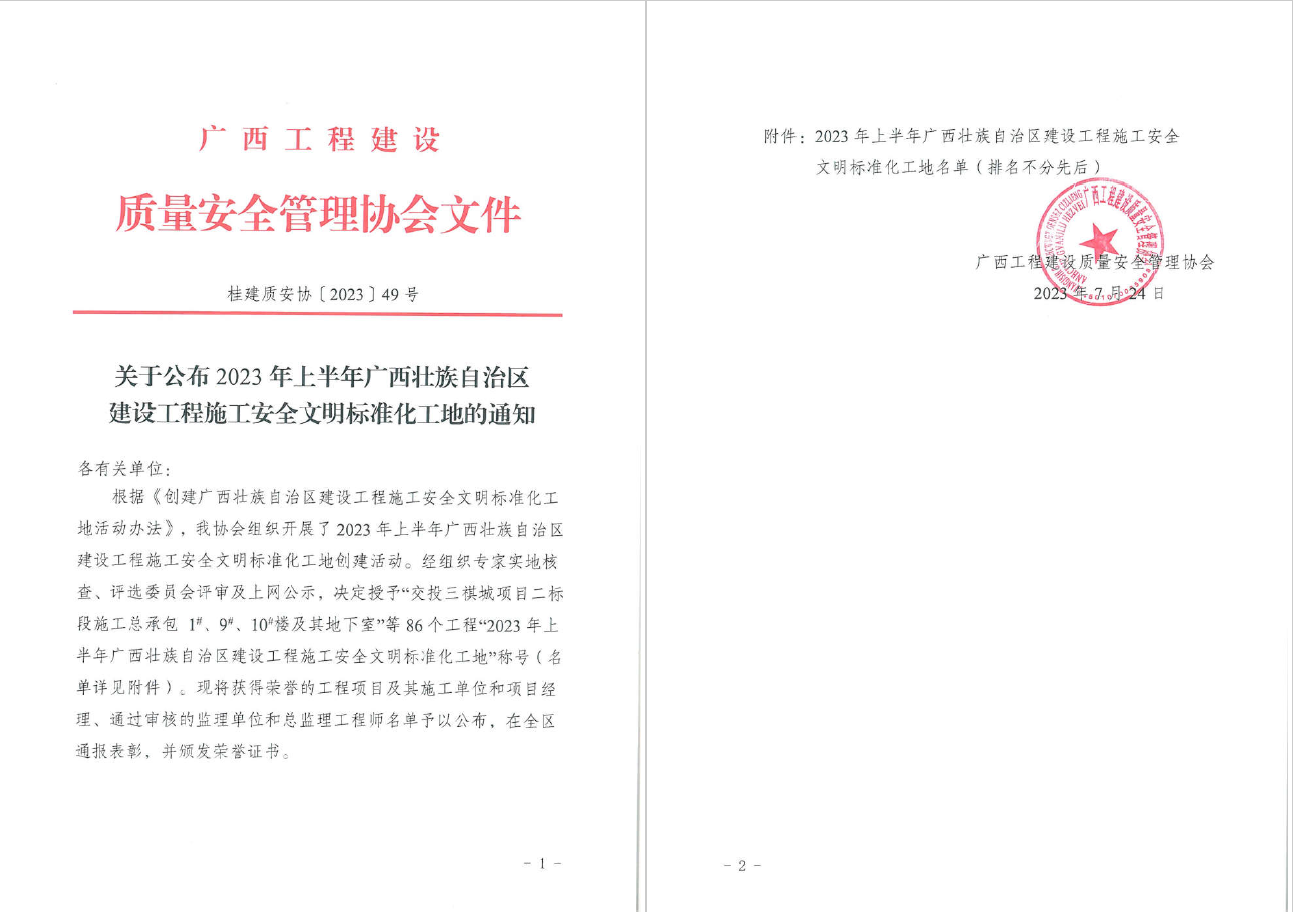 01、2023年上半年廣西壯族自治區(qū)建設(shè)工程安全文明標(biāo)準(zhǔn)化工地
