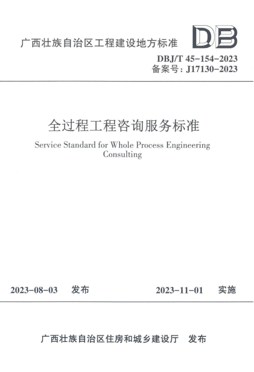 近日,廣西壯族自治區(qū)住房和城鄉(xiāng)建設(shè)廳發(fā)布通知,正式批準(zhǔn)發(fā)布廣西工程建設(shè)地方標(biāo)準(zhǔn)《全過(guò)程工程咨詢服務(wù)標(biāo)準(zhǔn)》(DBJ/T45-154-2023)(以下簡(jiǎn)稱《標(biāo)準(zhǔn)》),自2023年11月1日起實(shí)施。該標(biāo)準(zhǔn)由廣西住建廳負(fù)責(zé)管理,主編單位中信恒泰負(fù)責(zé)具體技術(shù)內(nèi)容的解釋。