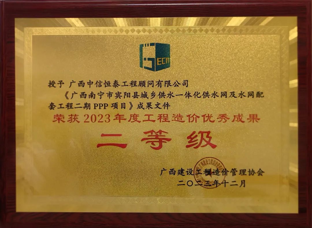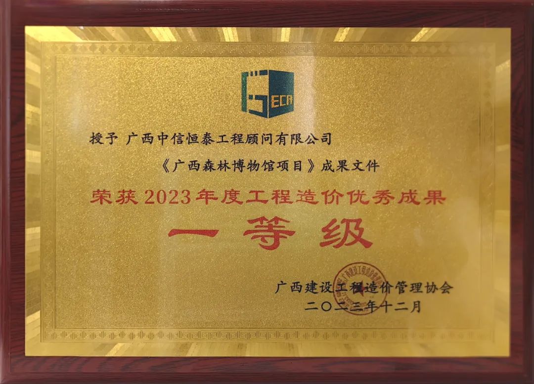 近日,廣西建設(shè)工程造價管理協(xié)會第五屆第五次理事會暨第三次會員代表大會在南寧順利召開,會上頒發(fā)了2023年度優(yōu)秀工程造價成果等級評定證書,中信恒泰編制的《廣西森林博物館項目》成果文件和《廣西南寧市賓陽縣城鄉(xiāng)供水一體化供水網(wǎng)及水網(wǎng)配套工程二期PPP項目》成果文件分別榮獲2023年度工程造價優(yōu)秀成果一、二等級。