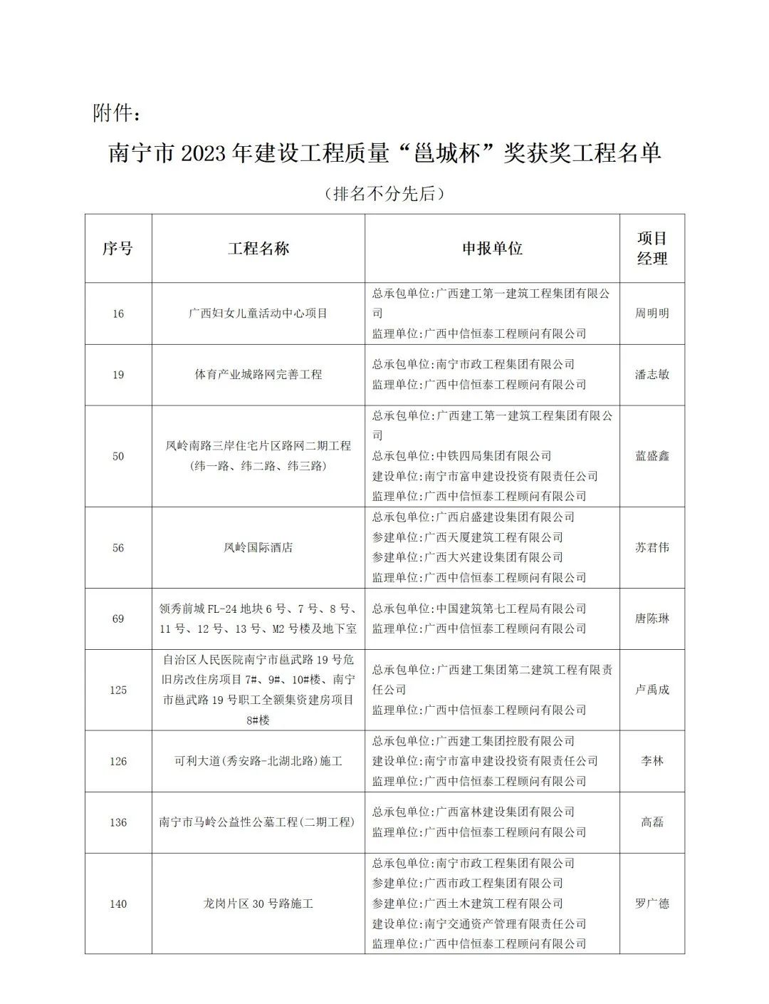 ◎中信恒泰14個(gè)項(xiàng)目榮獲2023年建設(shè)工程質(zhì)量“邕城杯”獎
