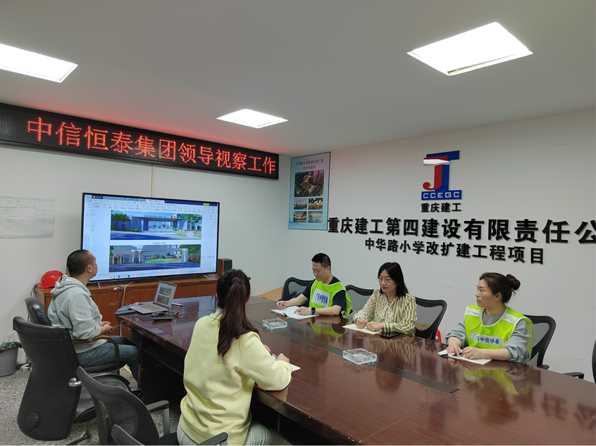 調(diào)研期間,張融一行實地考察了重慶分公司渝中區(qū)中華路小學(xué)改擴建工程項目。在項目現(xiàn)場,張融詳細聽取了項目團隊關(guān)于工程進度、質(zhì)量管控及安全生產(chǎn)情況的匯報,對團隊在復(fù)雜施工環(huán)境下取得的階段性成果給予充分肯定。對此,項目人員表示,將始終以高度的責(zé)任感和使命感投入建設(shè),以高標準、嚴要求確保工程順利推進。