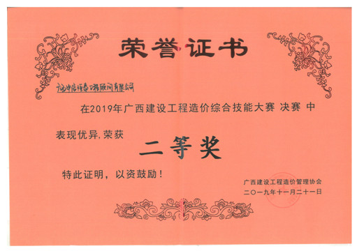 廣西造價(jià)綜合技能大賽團(tuán)體二等獎(jiǎng):1項(xiàng)