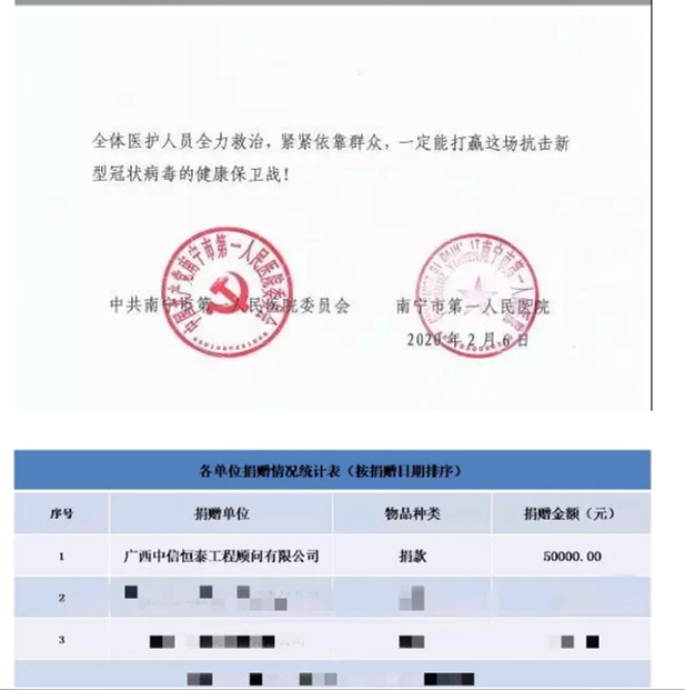 大愛無言 善舉無價|中信恒泰向南寧市第一人民醫(yī)院捐款50000元