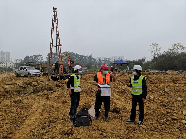 圖為全過程咨詢技術(shù)總監(jiān)農(nóng)航(右一)在項(xiàng)目現(xiàn)場(chǎng)指導(dǎo)工作