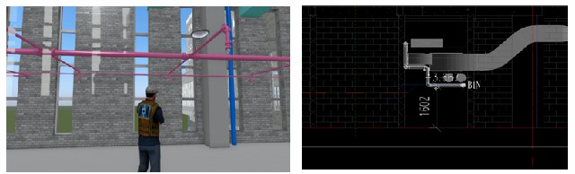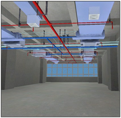 通過(guò)整合機(jī)電全專業(yè)模型,做機(jī)電碰撞檢測(cè),導(dǎo)出機(jī)電生化施工圖,依據(jù)管線綜合原則進(jìn)行管線可視化調(diào)整沖突,避免返工,方便裝修,布置美觀。