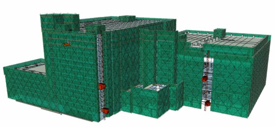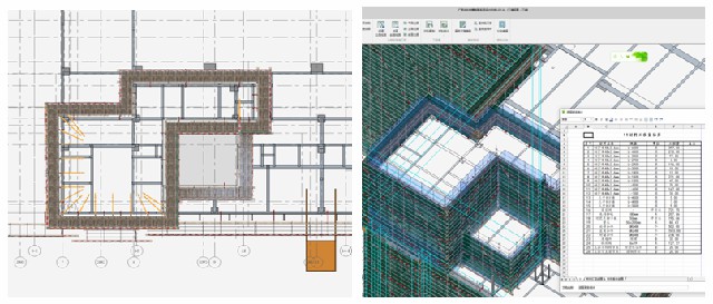 體育綜合館結(jié)構(gòu)復(fù)雜,夾層、架空層、飄板較多,外架施工存在諸多不確定因素,基于建筑和結(jié)構(gòu)模型,利用廣聯(lián)達(dá)BIM模板腳手架軟件3D模擬外架排布,放置施工電梯等,為編制施工方案、施工材料計(jì)劃和統(tǒng)計(jì)提供依據(jù)和便利。