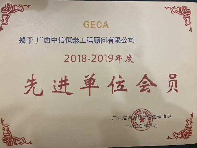 喜訊 | 中信恒泰獲廣西建設(shè)工程造價(jià)管理協(xié)會評為2018-2019年度先進(jìn)單位會員