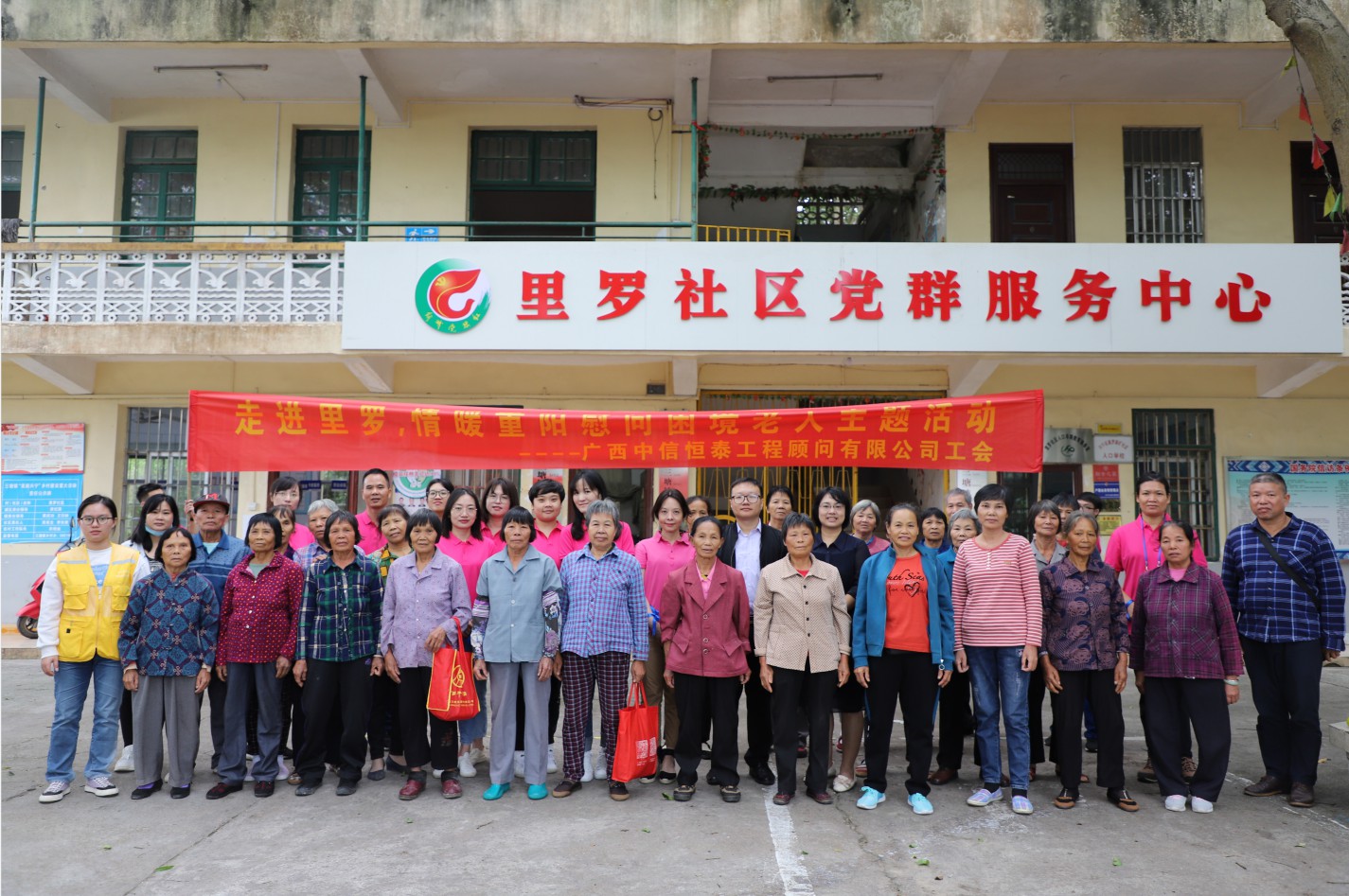 九九重陽節(jié),濃濃敬老情。在重陽佳節(jié)來臨之際,為弘揚(yáng)傳統(tǒng)美德,營造良好的社會(huì)風(fēng)尚,10月13日,廣西中信恒泰工程顧問有限公司工會(huì)聯(lián)合南寧市民政局、南寧市品樂誠社會(huì)工作服務(wù)中心到三塘鎮(zhèn)里羅社區(qū)開展2021年度藍(lán)絲帶關(guān)愛困境老人重陽慰問活動(dòng)。廣西中信恒泰工程顧問有限公司工會(huì)主席陸颯,副總經(jīng)理郭佳鑫等領(lǐng)導(dǎo)參加此次活動(dòng)。