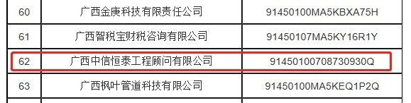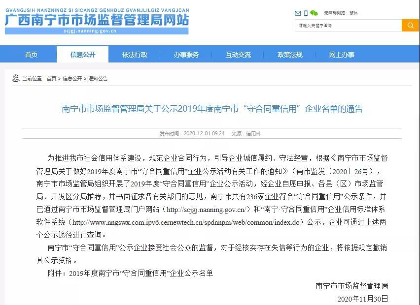 榜上有名 | 中信恒泰榮獲2019年度南寧市“守合同重信用”企業(yè)