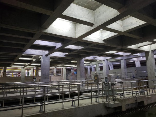 沙江河再生水廠占地面積4.46公頃,該水廠是廣西首座全地埋式再生水廠 ,沙江河水質凈化廠位于河道干流K1+950~K2+440位置,規(guī)模為5萬噸/天。沙江河水質凈化廠工程設備分為機械設備、泵、閘門和計量裝置。泵包括潛水泵、污水泵、污泥泵等。閘門包括平面鋼閘板、蝶閘等。機械設備包括格柵系統(tǒng)、沉砂系統(tǒng)、曝氣系統(tǒng)、刮泥機、鼓風機、電動單梁橋式起重機等。