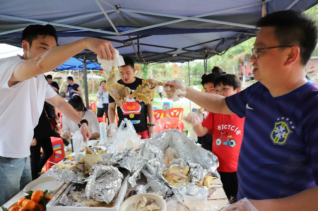 當天,懷著愉悅的心情,大家來到嘉和城碧灣園林。隨著團隊的到來,園地內(nèi)充滿著歡歌笑語。10點燒烤正式開始,大家拿出準備好的食材各自忙碌起來,大家分工合作,井井有條,有的生火,有的調(diào)料,有的窯雞......伴隨著炭火燃起的火焰,食物產(chǎn)生的香味溢滿四周,讓人垂涎三尺。大家一邊吃著自己親手烤出的食物,一邊談論生活中、工作中的瑣事,整個燒烤場內(nèi)充滿了歡聲笑語。