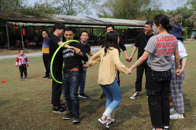 燒烤結(jié)束休息片刻之后,以小組為團體,分別開展了親子接龍、快樂氣球接力跑、環(huán)環(huán)相套、紙牌、真人CS等活動。在每個環(huán)節(jié)的挑戰(zhàn)中,員工們充分發(fā)揮團隊精神,有的緊緊拉住隊友的手幫助他完成任務,有的不斷給隊伍加油助威。大家互幫互助、團結(jié)協(xié)作,每一個人都在用自己的智慧和熱情幫助團隊順利完成,氣氛十分熱烈。