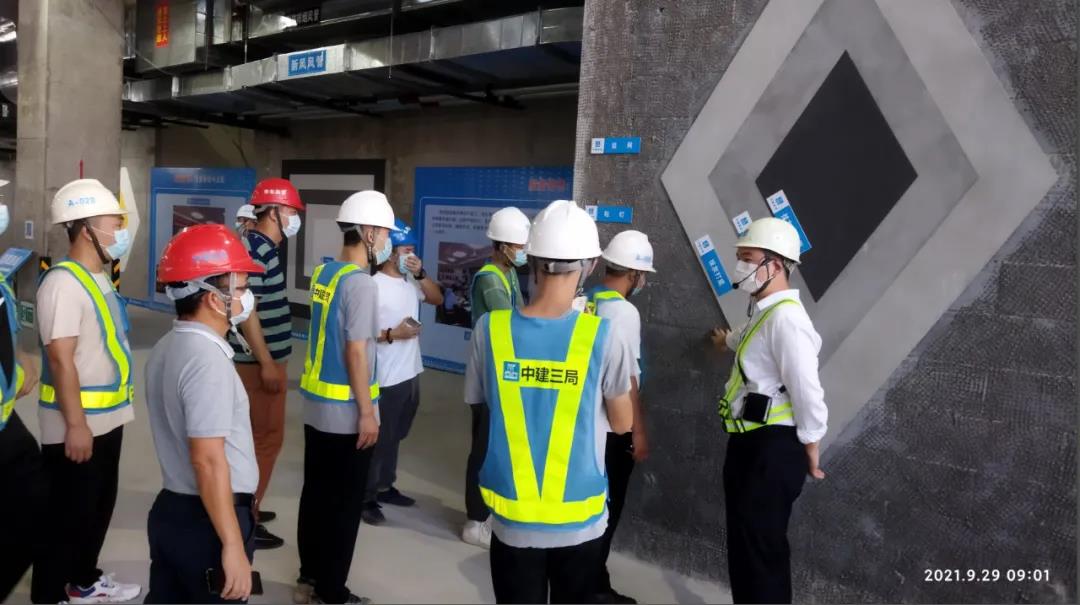 觀摩會(huì)現(xiàn)場(chǎng),承辦單位向參觀人員現(xiàn)場(chǎng)展示了砌體抹灰施工工藝、石粉墻面施工工藝、墻面涂料施工工藝、機(jī)電設(shè)備施工工藝、外架金屬鋼板網(wǎng)施工工藝、陶粒板輕質(zhì)隔墻施工工藝、外墻ALC施工工藝等13種工藝實(shí)體樣板,詳細(xì)介紹了各工藝的質(zhì)量管控重點(diǎn)。其中外架金屬鋼板網(wǎng)施工工藝、陶粒板輕質(zhì)隔墻施工工藝、外墻ALC施工工藝為本工程的工藝亮點(diǎn)。觀摩會(huì)上還設(shè)置了VR質(zhì)量安全體驗(yàn)區(qū)、BIM技術(shù)應(yīng)用、安全教育小黑屋、安全教育培訓(xùn)室等,更好的展現(xiàn)項(xiàng)目如何運(yùn)用現(xiàn)代化技術(shù)管控現(xiàn)場(chǎng)。參觀人員不時(shí)與項(xiàng)目管理人員就質(zhì)量控制、安全管理等各方面細(xì)進(jìn)行探討交流。觀摩會(huì)現(xiàn)場(chǎng)內(nèi)容豐富,亮點(diǎn)突出,得到了參觀人員一致好評(píng)。
