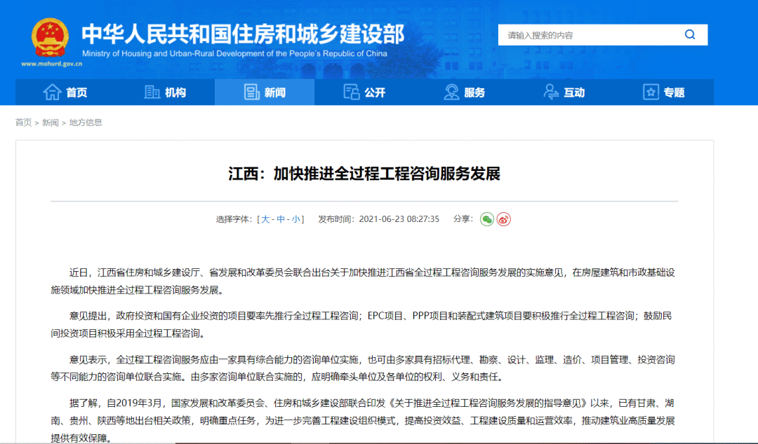 江西:加快推進全過程工程咨詢服務發(fā)展