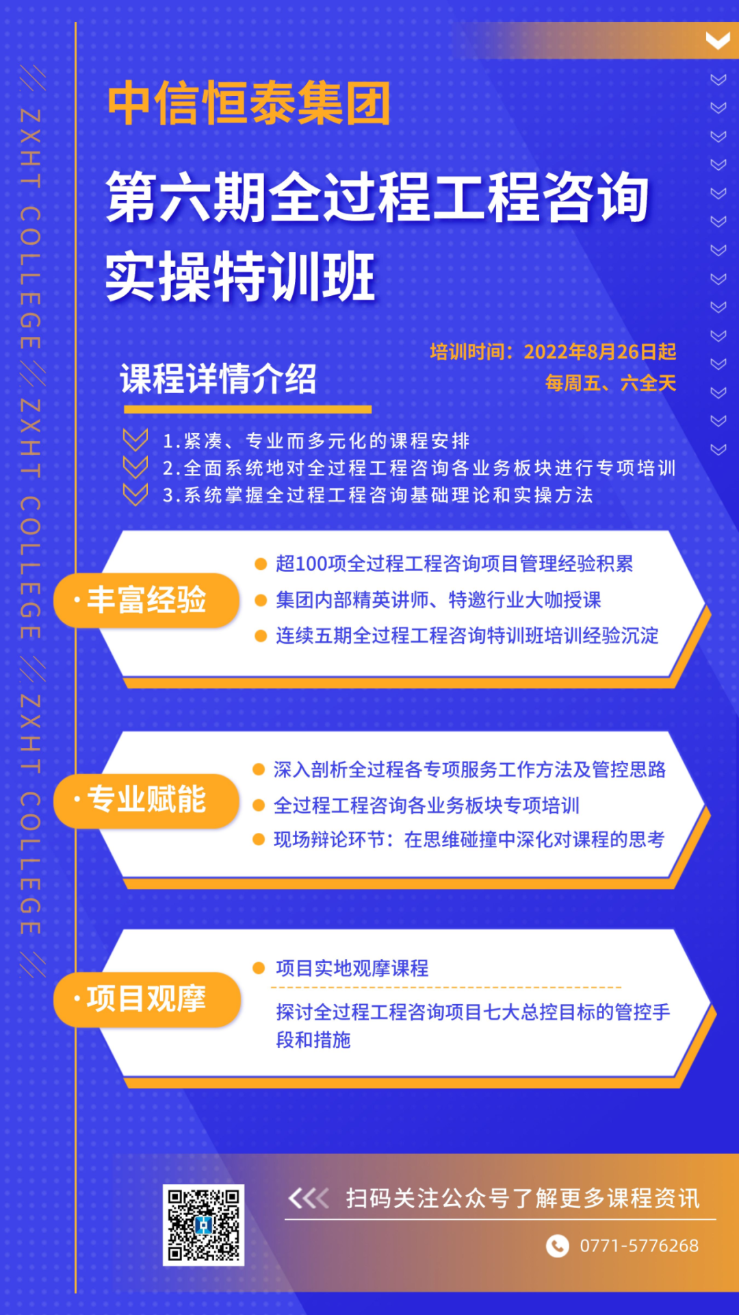 創(chuàng)新發(fā)展,人才為先。中信恒泰全過程工程咨詢實操特訓班是中信恒泰深度踐行學習文化、創(chuàng)新學習機制、堅持人才戰(zhàn)略高地的重要舉措,致力于培養(yǎng)全咨行業(yè)的領軍人才,為全咨行業(yè)的發(fā)展貢獻力量,現(xiàn)已有五期成功培訓經(jīng)驗。本期課程在往期培訓經(jīng)驗的基礎上,針對行業(yè)實際和學員需求,進一步優(yōu)化了課程設置,完善了教學體系,授課形式以線下集中授課為主,并結(jié)合網(wǎng)絡學習、實測實練、重難點知識梳理等形式輔助教學,給各位學員帶來更加全面、科學、系統(tǒng)、豐富的學習體驗,切實幫助學員提升全過程工程咨詢各項專業(yè)能力。