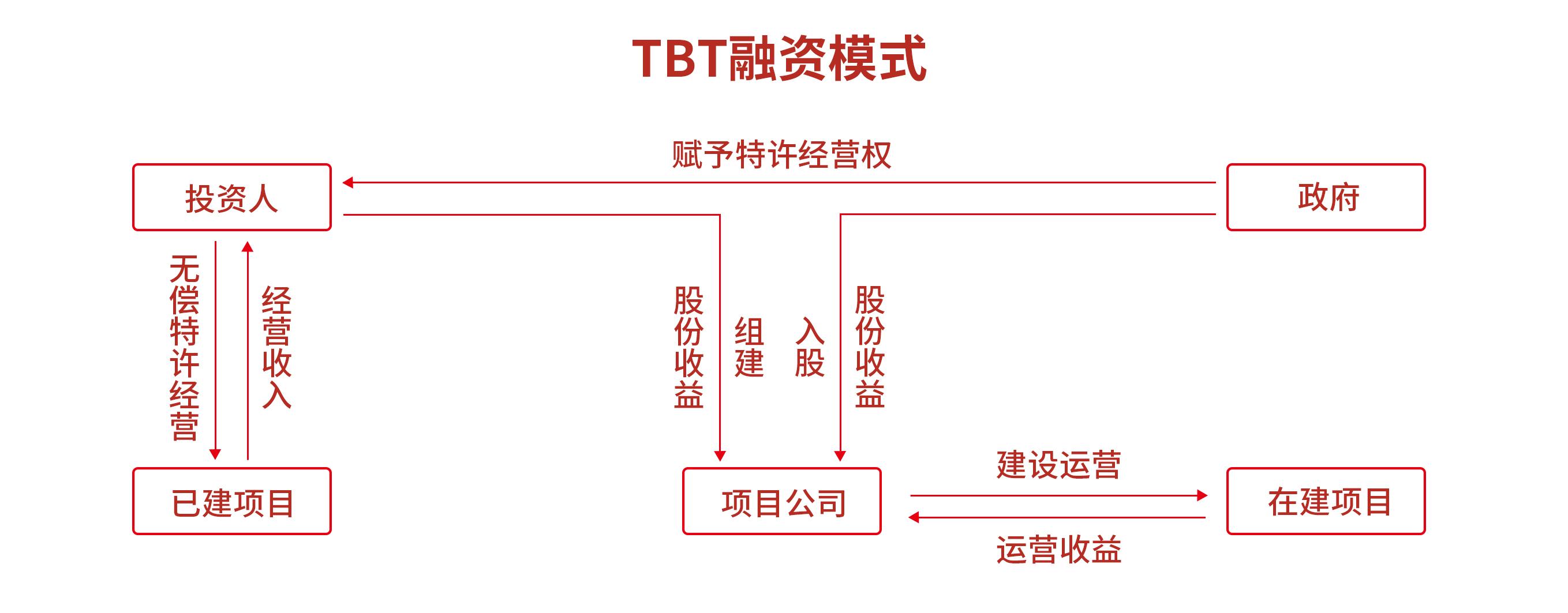 TBT融資模式的組建方式是將TOT與BOT融資方式組合起來,以BOT為主的一種融資模式。在TBT模式中,TOT的實(shí)施是輔助性的,采用它主要是為了促成BOT.