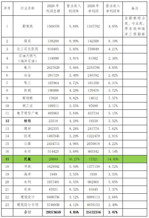 2020年工程勘察設(shè)計(jì)行業(yè)盈利水平及指標(biāo)表 (單位:萬元)