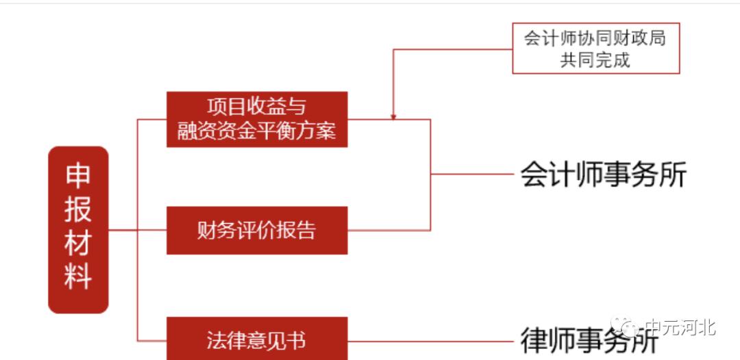 專項(xiàng)債額度下發(fā)后,就要開始制作一套發(fā)債申報(bào)材料。從各省市的情況來(lái)看,都是由市縣財(cái)政局牽頭,相關(guān)職能部門配合。申報(bào)材料包括信息披露文件、項(xiàng)目收益與融資資金平衡方案、財(cái)務(wù)評(píng)價(jià)報(bào)告、法律意見書、信用評(píng)級(jí)報(bào)告。大部分情況,各市縣財(cái)政局發(fā)行債券只需提供項(xiàng)目收益與融資資金平衡方案、財(cái)務(wù)評(píng)價(jià)報(bào)告、法律意見書三份文件。整個(gè)申報(bào)材料的制作,由財(cái)政局聘請(qǐng)各中介機(jī)構(gòu)開展材料編寫工作,各中介機(jī)構(gòu)主要包括會(huì)計(jì)師事務(wù)所、律師事務(wù)所。各家的職能分別為: