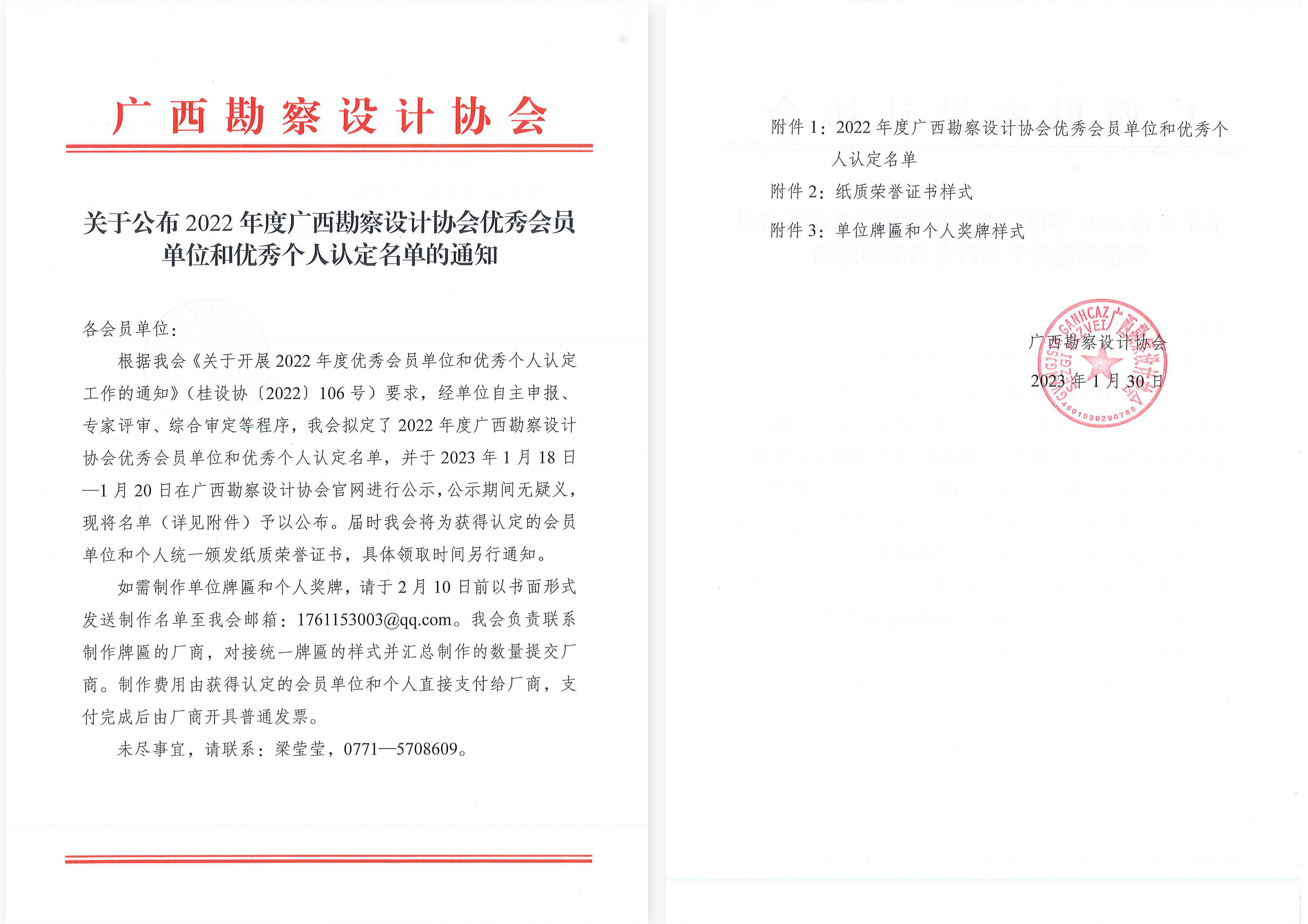 喜訊 | 中信恒泰榮獲2022年度廣西勘察設(shè)計(jì)協(xié)會(huì)優(yōu)秀會(huì)員單位系列榮譽(yù)